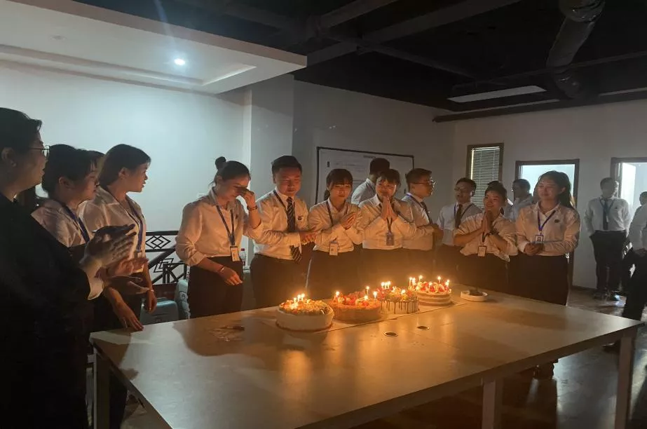 大(dà)會結束之後,集體(tǐ)爲6月—8月生(shēng)日(rì)的員(yuán)工(gōng)慶生(shēng),大(dà)家一起唱生(shēng)日(rì)歌,分(fēn)享蛋糕,共同慶祝生(shēng)日(rì)快(kuài)樂。